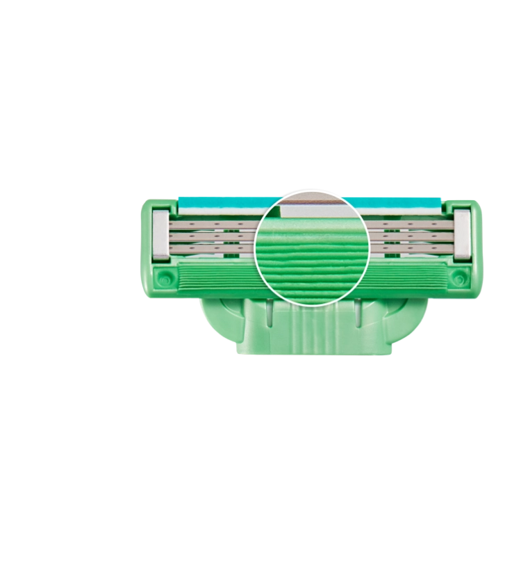 Los microtensores preceden a las hojas y alisan la piel antes de que la primera hoja corte el primer vello. De ese modo, obtienes una afeitada cómoda y al ras.